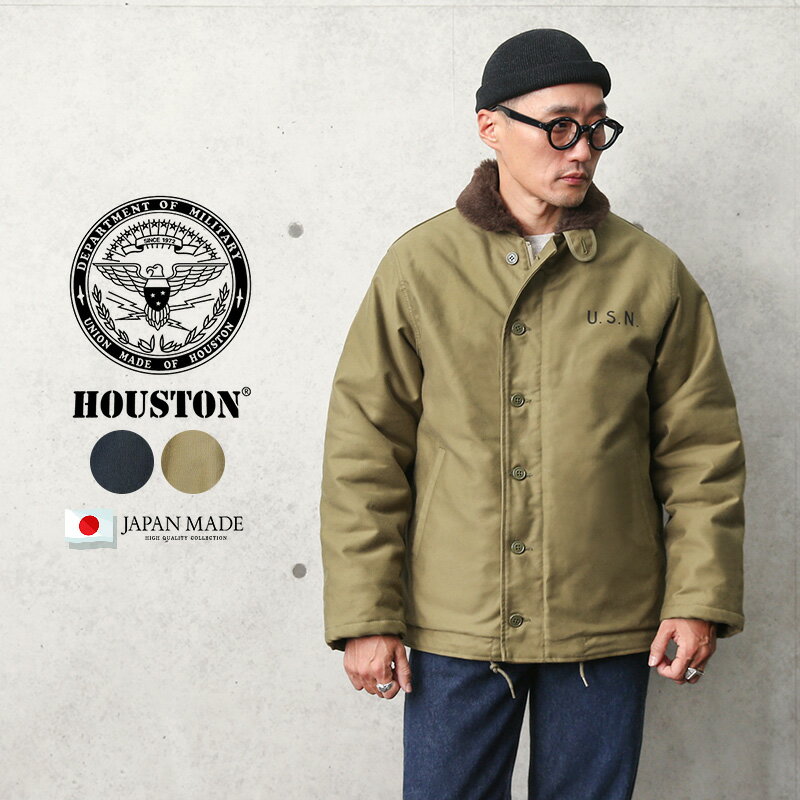 クーポンで最大18%OFF★HOUSTON ヒューストン 51131 日本製 アルパカライニング N-1 デッキジャケット【R】| アウター メンズ 防寒 バイク アメカジ ミリタリー 渋い おしゃれ ベージュ カーキ ボア ワンポイント