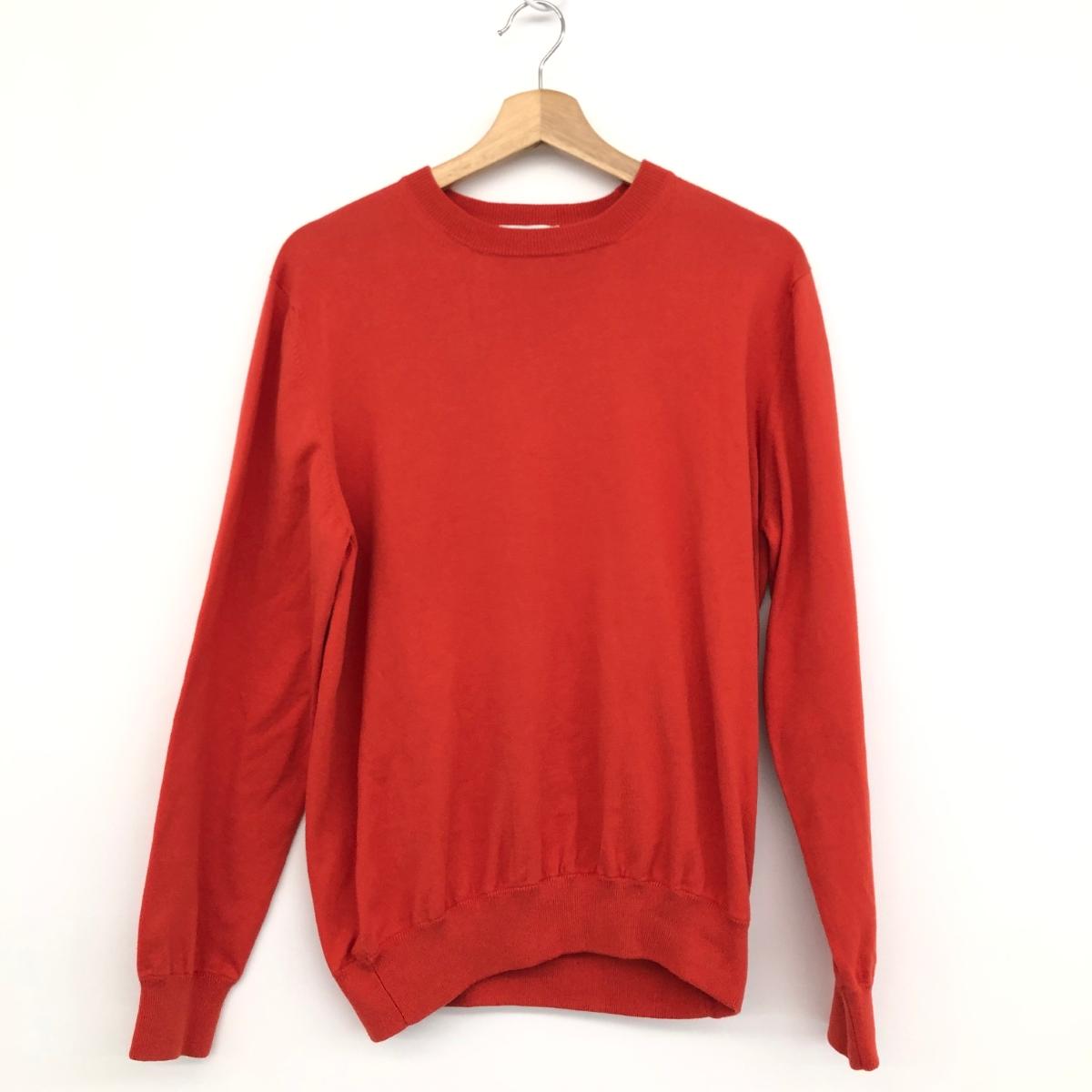 Settefili Cashmere セッテフィーリ カシミヤ クルーネック ニット 未使用品 S オレンジ メンズ トップス ハイゲージ コットン 【中古】