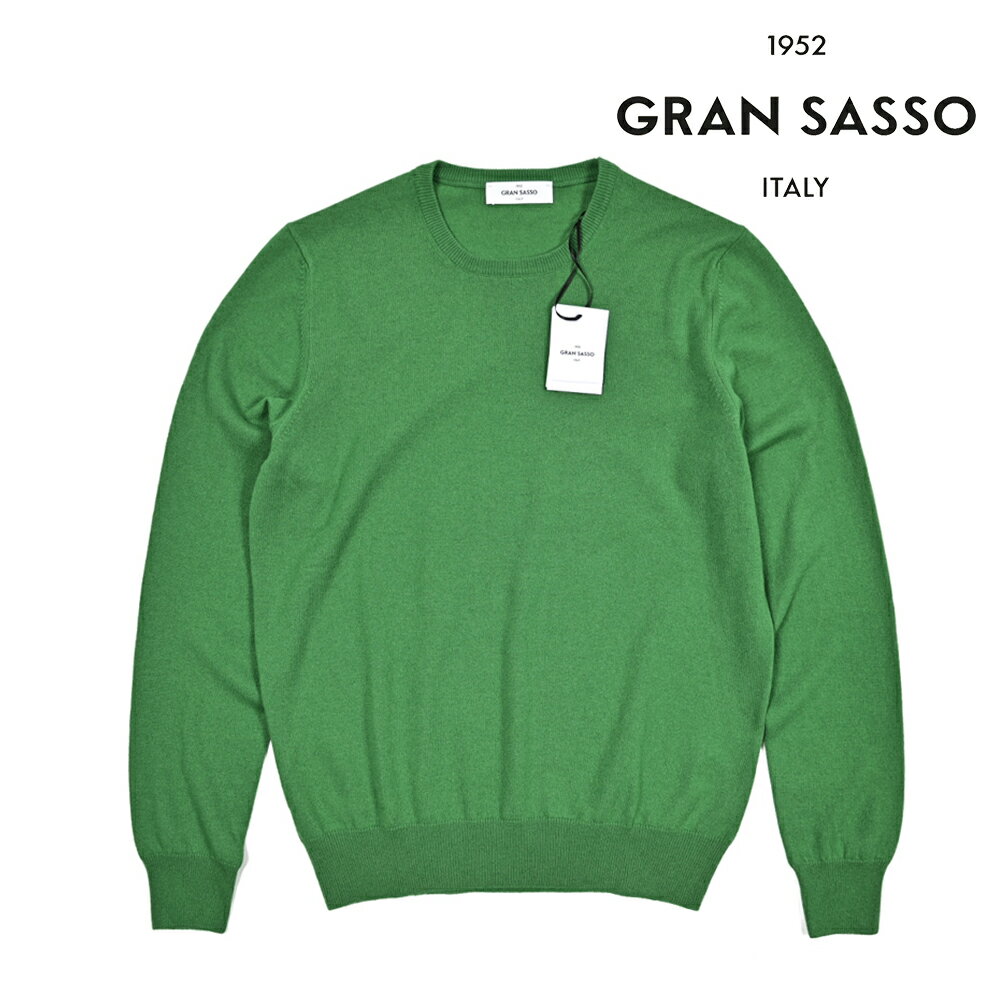 【秋冬先行セール】【半額以下】 グランサッソ GRAN SASSO CASHMERE カシミヤ100% ニットセーター クルーネック ハイゲージ 長袖 秋冬 メンズ グリーン イタリア ブランド MADE IN ITALY