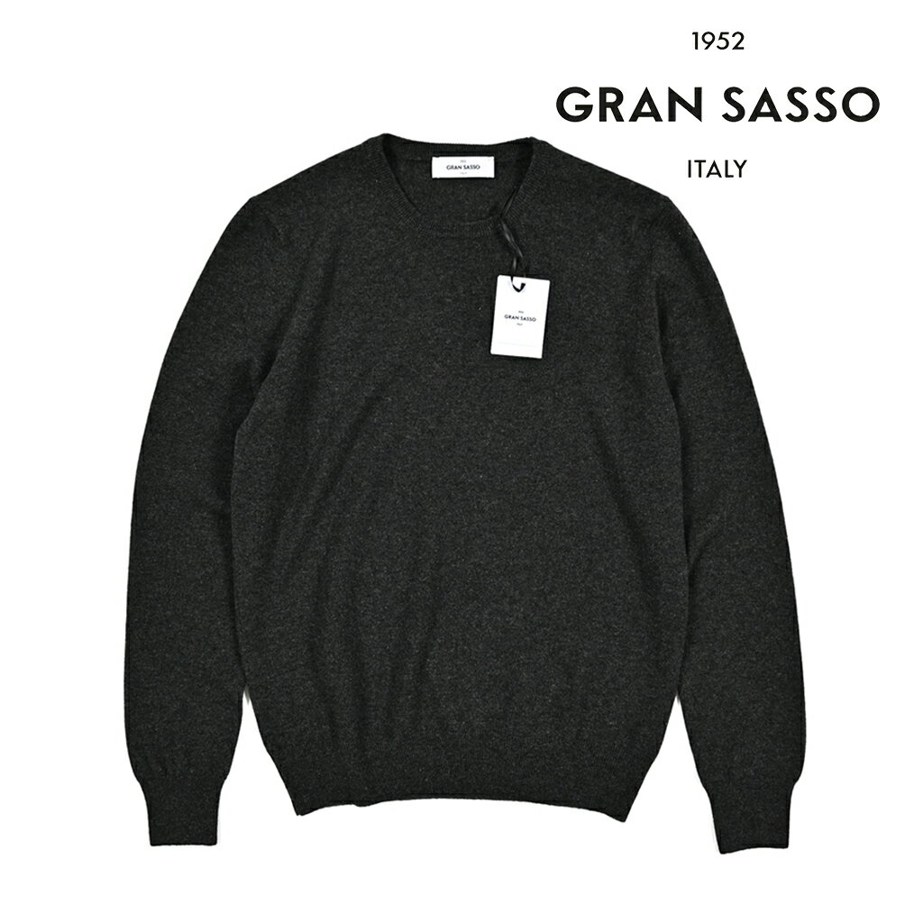 【秋冬先行セール】 グランサッソ GRAN SASSO CASHMERE カシミヤ100% ニットセーター クルーネック ハイゲージ 長袖 秋冬 メンズ チャコールグレー イタリア ブランド MADE IN ITALY
