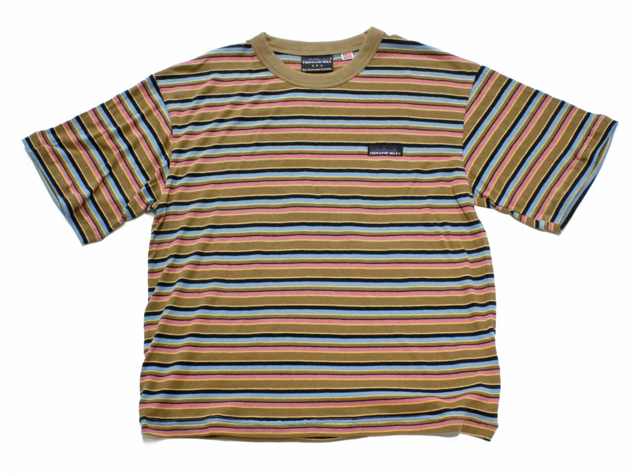 『THOUSAND MILE』 (サウザンドマイル) 半袖 ボーダー Tシャツ レトロボーダー アメリカ製 (ブラウンxネイビー)