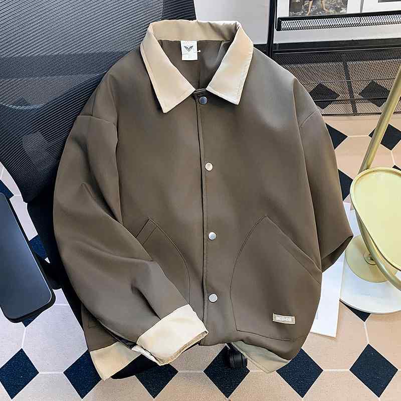 ・カテゴリ: ジャケット・スタイル: アメカジ・主な素材: 綿85%・ネックライン: 襟付き・袖丈: 長袖・フィット: ルーズフィット・前合わせ: シングルボタン・裾: ストレートヘム・着用方法: アウター・素材機能: 耐摩耗性・着用シーン: カジュアル・ターゲット層: 青少年・対象年齢: 成人・対象性別: 男性・カラー展開: コーヒーブラウン・サイズ展開: S, M, L, XL, XXL