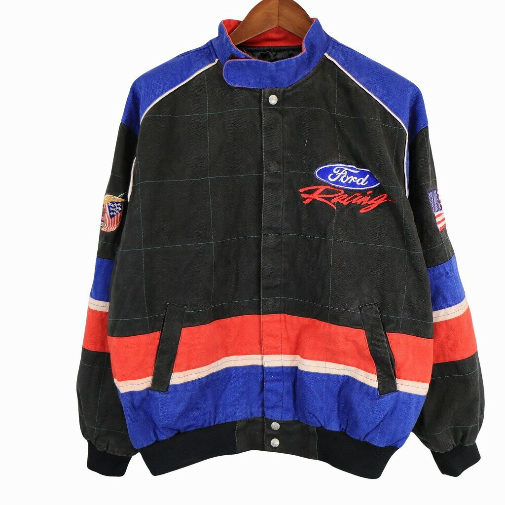 【11/16 48h限定555円OFFクーポン!】 90s USA製 ジェフハミルトン ナスカー レーシング ジャケット メンズ XL オールド 当時物 NASCAR 企業物 ジャンパー ブルゾン 大きいサイズ| 中古 90's 90年代 アメリカ製 モータースポーツ オフィシャル コットンジャケット レーシング