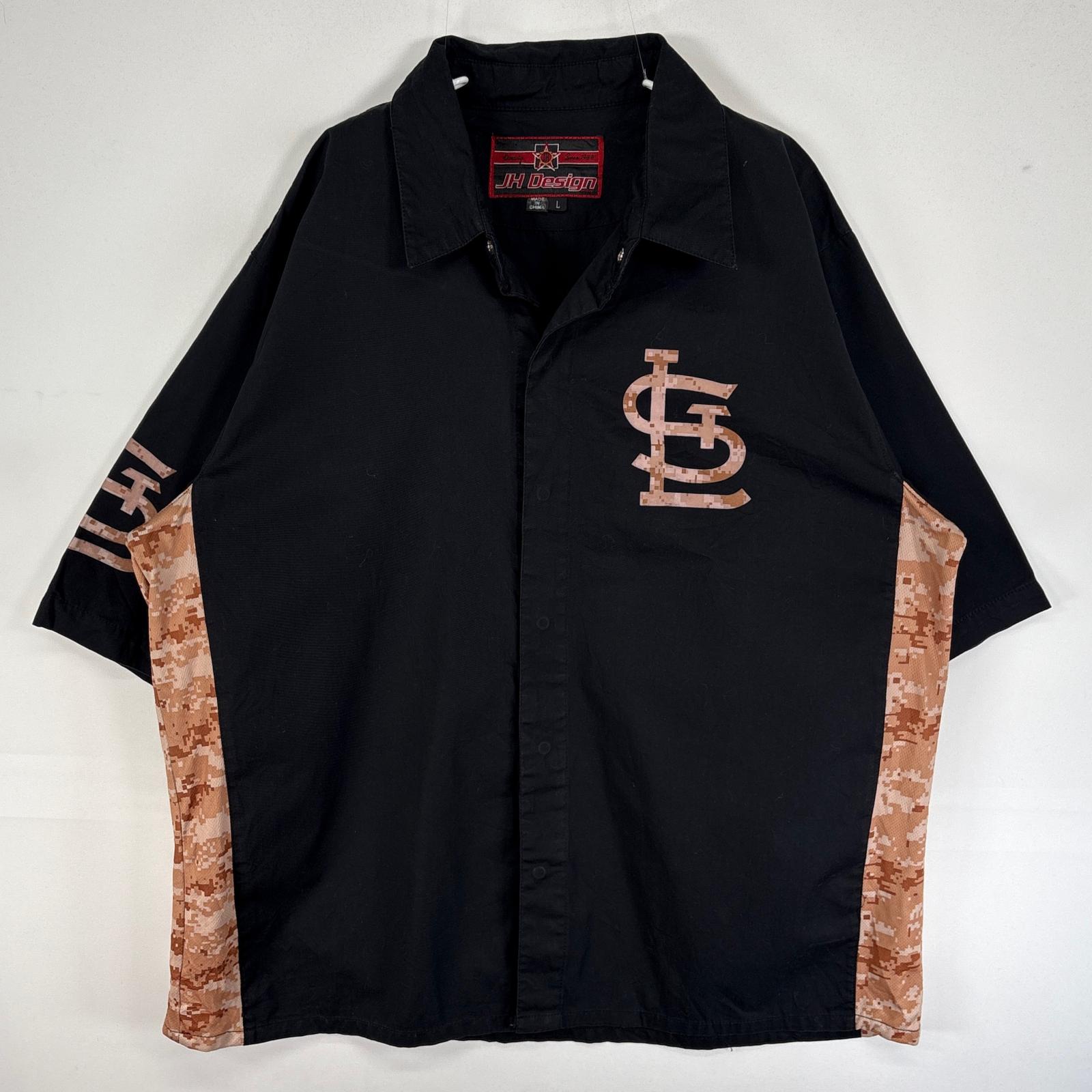 古着 ジェフハミルトン Jeff Hamilton 半袖シャツ MLB カージナルス 迷彩 カモ ロゴ スナップボタン L ブラック ツートン メンズ 【中古】