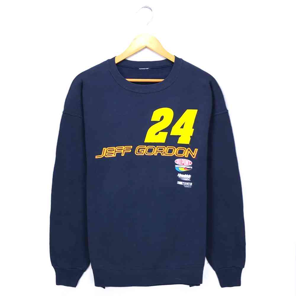 JEFF GORDON プリントスウェット ネイビー 刺繍 トレーナー レーサー NASCAR レーシング ジェフ ゴードン NASCAR NAVY 紺 古着【中古】wv2101-2164
