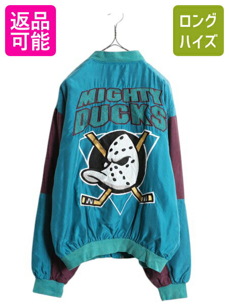 【11/16 48h限定555円OFFクーポン!】 100% シルク 90s ジェフハミルトン マイティ ダックス ブルゾン メンズ M オールド NHL ホッケー トラック ジャケット ボンバー フルジップ| 古着 中古 90's 90年代 アイスホッケー オフィシャル トラックジャケット ボンバージャケット