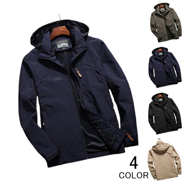 カジュアルジャケット メンズ アウター コート ブルゾン マウンテンパーカー ライトアウター ジャンパー コート フード付き アウトドア カジュアル 防寒 防風 大きサイズ 無地 春 秋 ウィンドブレーカー 無地 アウトドアウェア 登山ウェア 送料無料