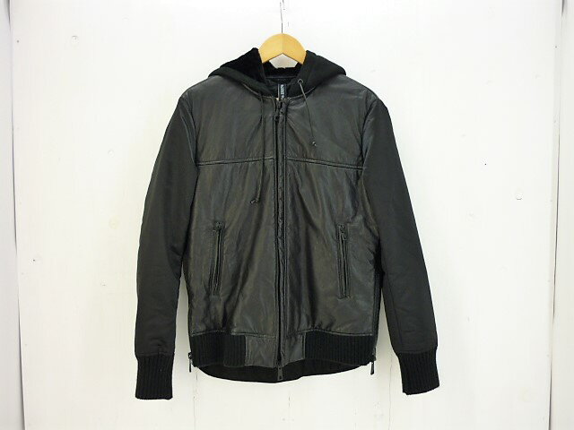 値下げしました Giorgio Brato ジョルジョブラット レザー×ナイロン切前ジップパーカー size:48 ブラック シープスキン