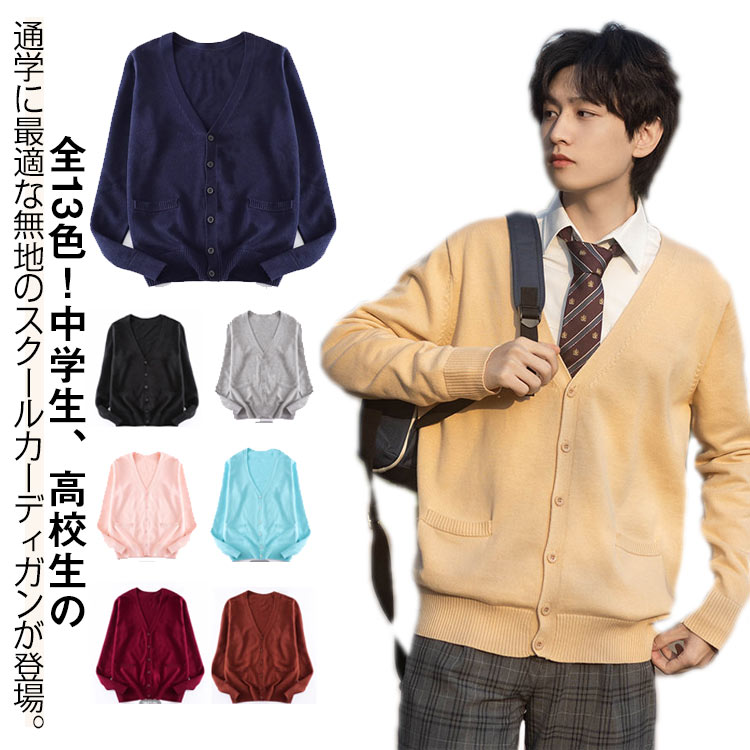 スクールカーディガン 男子 女子 中学生 高校生 学生服 Vネック ニットカーディガン 秋冬 学生制服 長袖 カーディガン 無地 スクールセーター 中学 高校 通学 学生 男子高生 女子高生 JK DK アウター 送料無料 紺 グレー ベージュ 送料無料