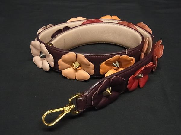 ■美品■ FENDI フェンディ ストラップユー レザー フラワー スタッズ バッグ用 ショルダーストラップ 肩掛け マルチカラー FQ3555