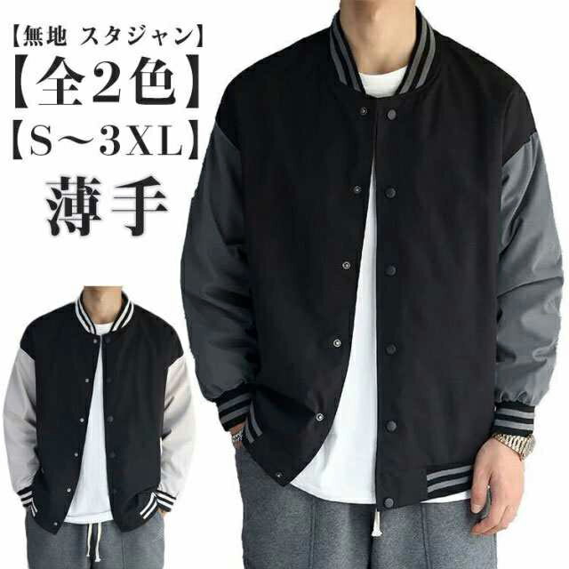 スタジャン メンズ アウター ブルゾン ジャンパー 薄手 ジャケット シンプル 無地 羽織り 長袖 春 秋 冬 オールシーズン ゆったり 大きいサイズ ストリート アメカジ 原宿 秋 冬 冬物 冬服 送料無料