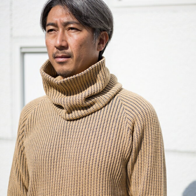 TURN ME ON(ターンミーオン) スヌード付きワッフル編みニット (SAND) (MENS)M/Lサイズ