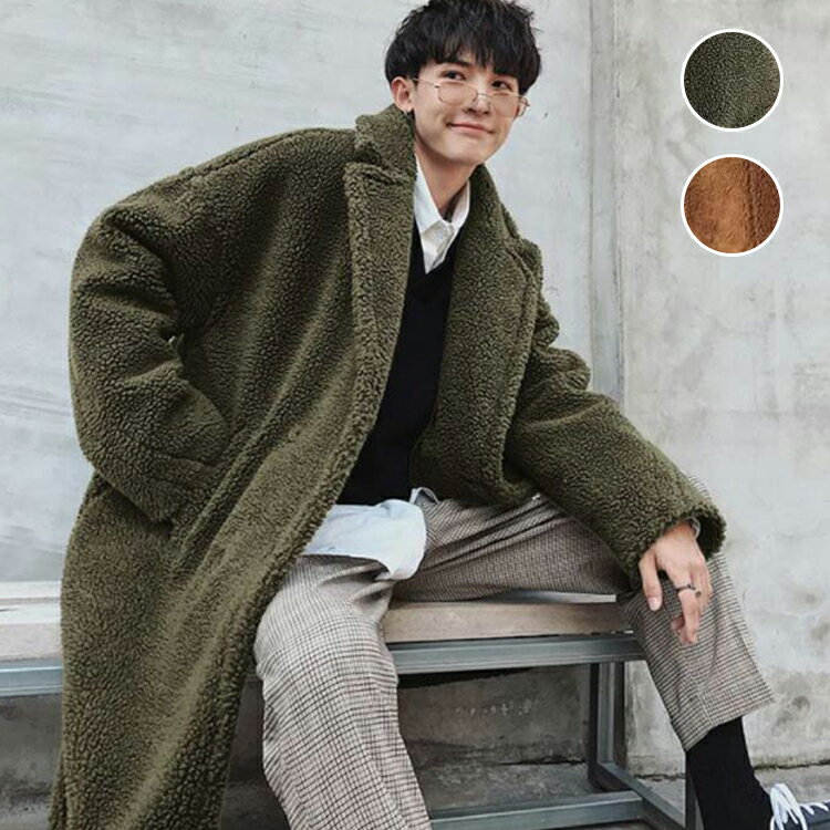 「スーパーSALE割引」裏キルト ふわふわ 韓国風 ロング ボタン オーバーサイズ カーキ メンズ 厚手 トレンチコート もこもこ チェスターコート ボアコート 防寒 ゆったり 保温 ボアフリース ロングコート ブラウン 冬 アウター 軽量 暖かい