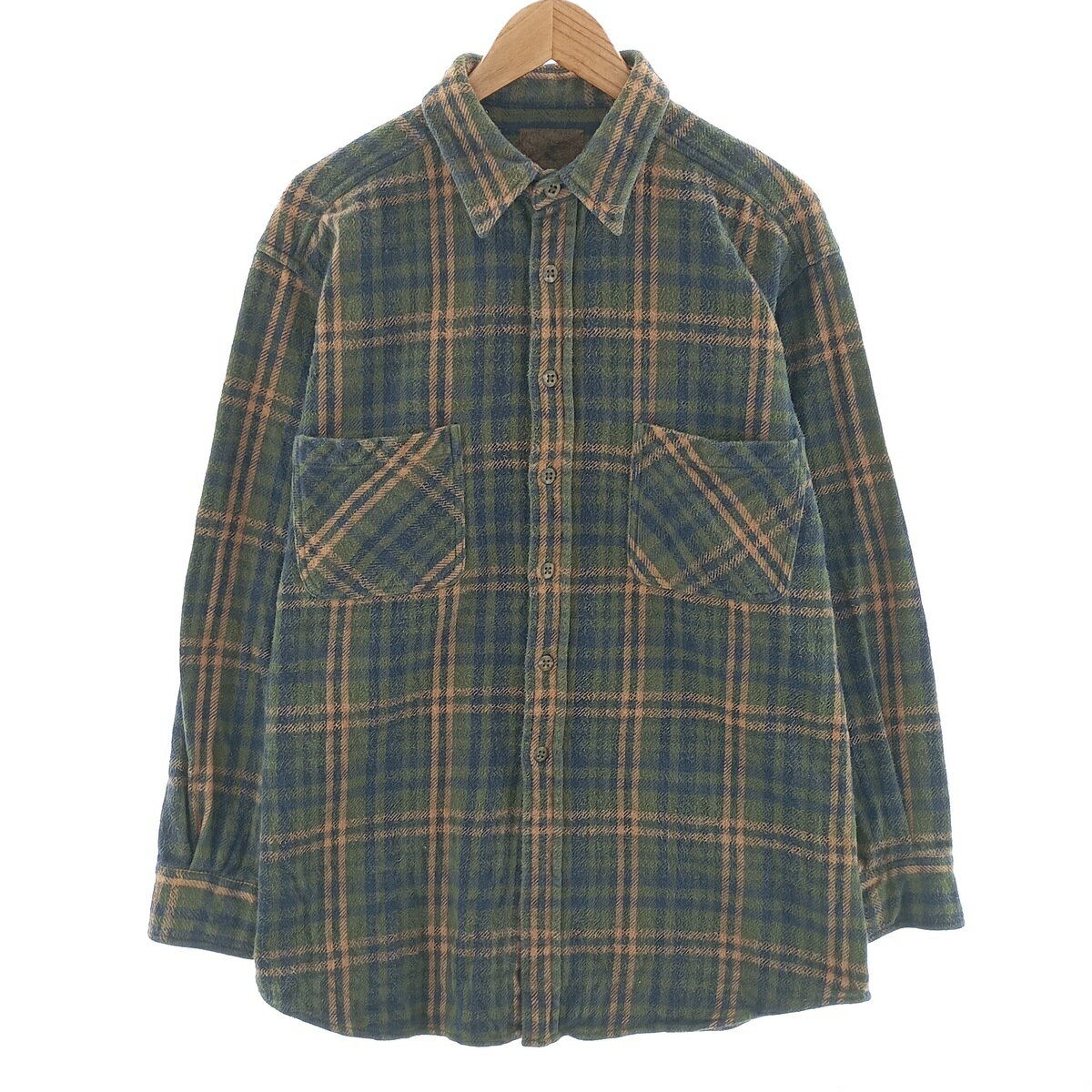 【中古】古着 セントジョンズベイ 長袖 ヘビー フランネルシャツ メンズ 90年代 90s コットン 緑 グリーン Mサイズ 中古 トップス | 秋冬 秋物 秋服 冬物 冬服 カジュアルシャツ メンズファッション 長袖シャツ おしゃれ カジュアル 5OF