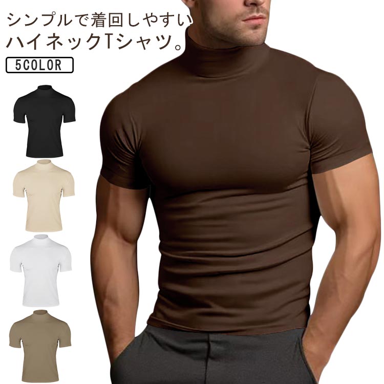 半袖 Tシャツ タートルネック トップス メンズ 男性 ゴルフウェア 夏 夏物 ハイネック カットソー 薄手 無地 インナーtシャツ 春夏秋 作業着 カジュアル スポーツ ティーシャツ ランニング ジム イベント ストレッチ