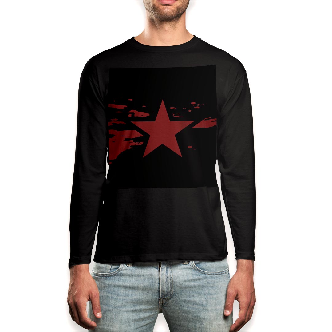 ロング tシャツ メンズ 長袖 ブラック デザイン XS S M L XL 2XL ロンT ティーシャツ 黒 black T shirt long sleeve 010866 星 黒 赤