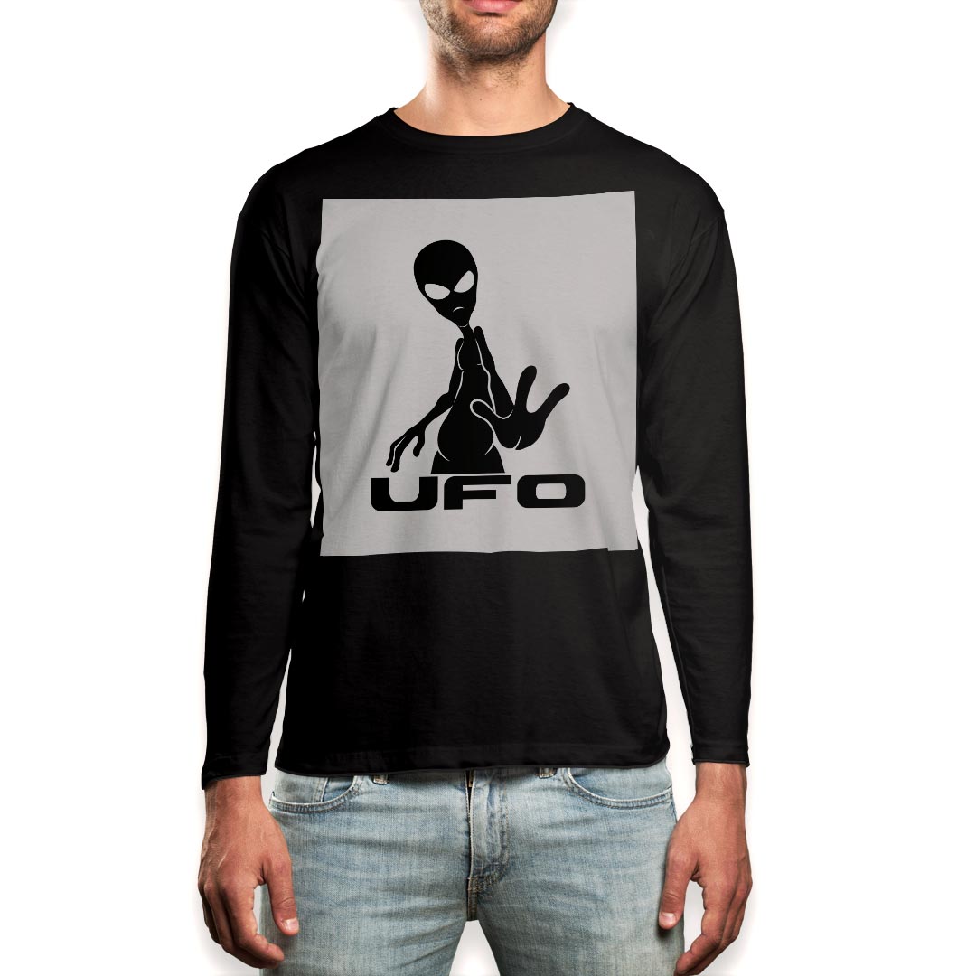 ロング tシャツ メンズ 長袖 ブラック デザイン XS S M L XL 2XL ロンT ティーシャツ 黒 black T shirt long sleeve 013624 宇宙人 UFO エイリアン