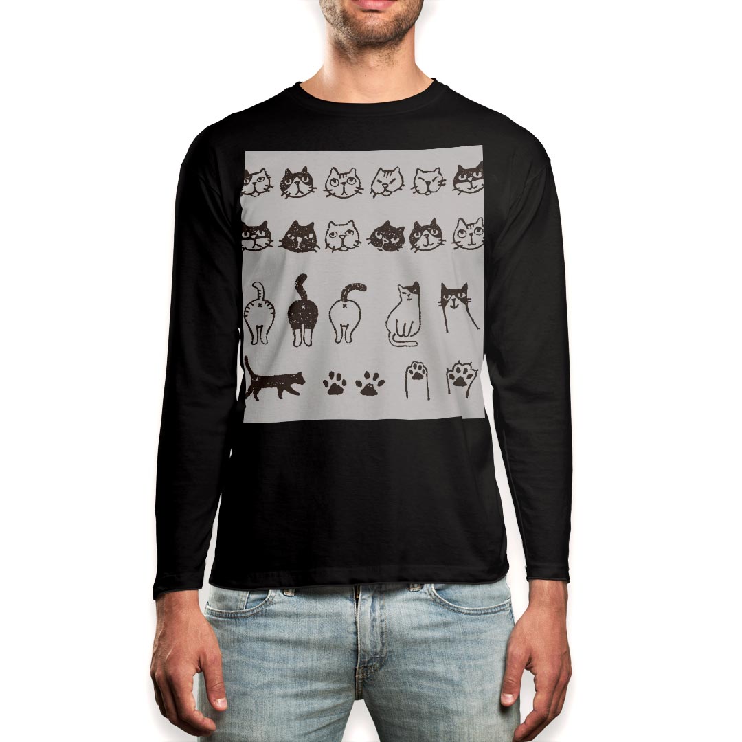 ロング tシャツ メンズ 長袖 ブラック デザイン XS S M L XL 2XL ロンT ティーシャツ 黒 black T shirt long sleeve 013991 猫 動物 アニマル