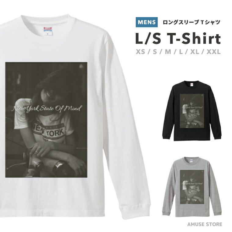 Tシャツ メンズ 長袖 ロングスリーブTシャツ ロンT ロングtシャツ おしゃれ XS S M L XL XXL ブラック ホワイト グレー カジュアル メンズファッション 秋 冬 秋服 冬服 NEW YORK OF MIND ニューヨーク シンプル モノクロ デザイン