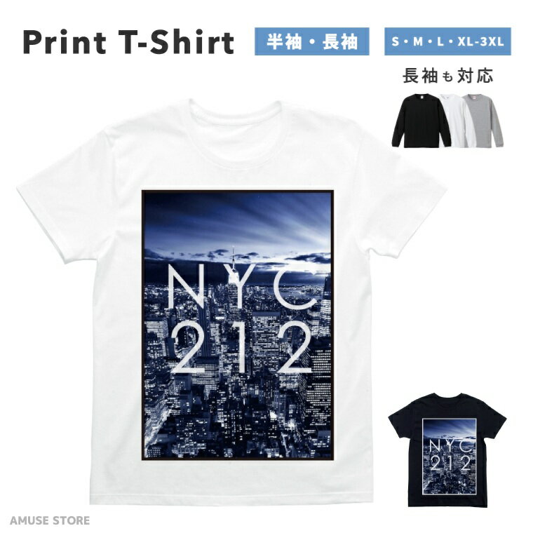 Tシャツ メンズ 半袖 長袖 おしゃれ プリント 綿100% 大きいサイズ 小さいサイズ レディース コットン ブラック ホワイト グレー カジュアル ファッション 5.6オンス 白Tシャツ 黒Tシャツ 推し かわいい NYC 212 NEW YORK CITY ニューヨーク オリジナル 景色 ビル 夜景