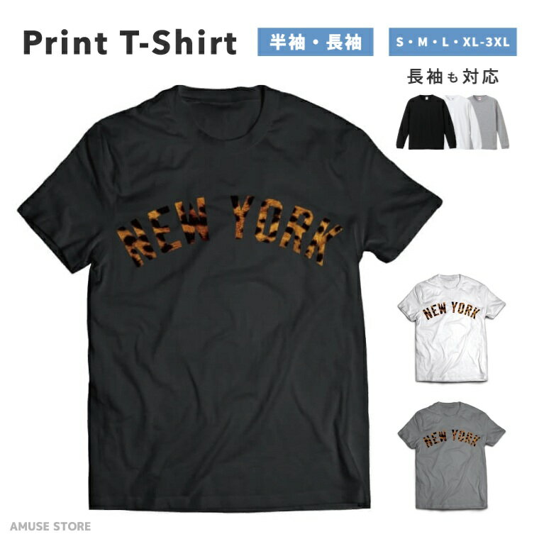 Tシャツ メンズ 半袖 長袖 おしゃれ プリント 綿100% 大きいサイズ 小さいサイズ レディース コットン ブラック ホワイト グレー カジュアル ファッション 5.6オンス 白Tシャツ 黒Tシャツ 推し かわいい NEW YORK 豹 ヒョウ baseball