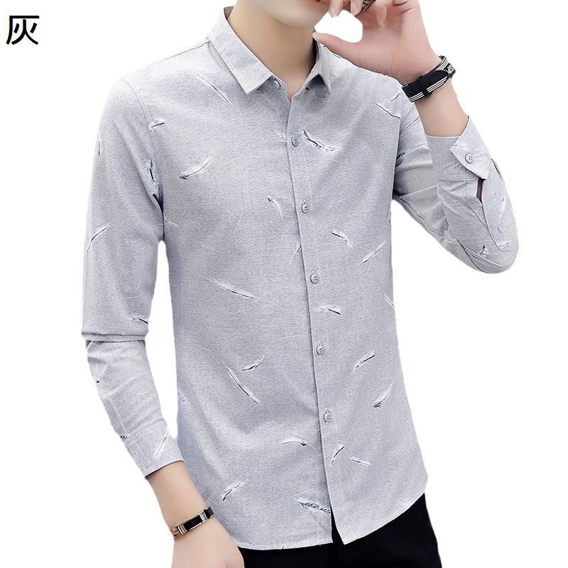 長袖シャツ カジュアルシャツ メンズ 秋服 総柄シャツ 羽毛模様 ボタンダウン ビジネス レギュラーフィット 快適 軽量 オープンカラー 通気性 モード系 かっこいい カップル 前開き 通勤 部屋着 旅行