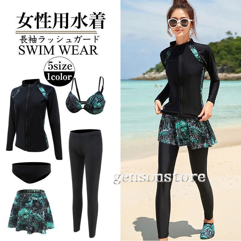 ラッシュガード 水着 体型カバー フィットネス レディース 上下5点セット 長袖 セパレート レギンス ビキニ スイムウェア 紫外線対策 ビーチ 旅行 海 ママ水着