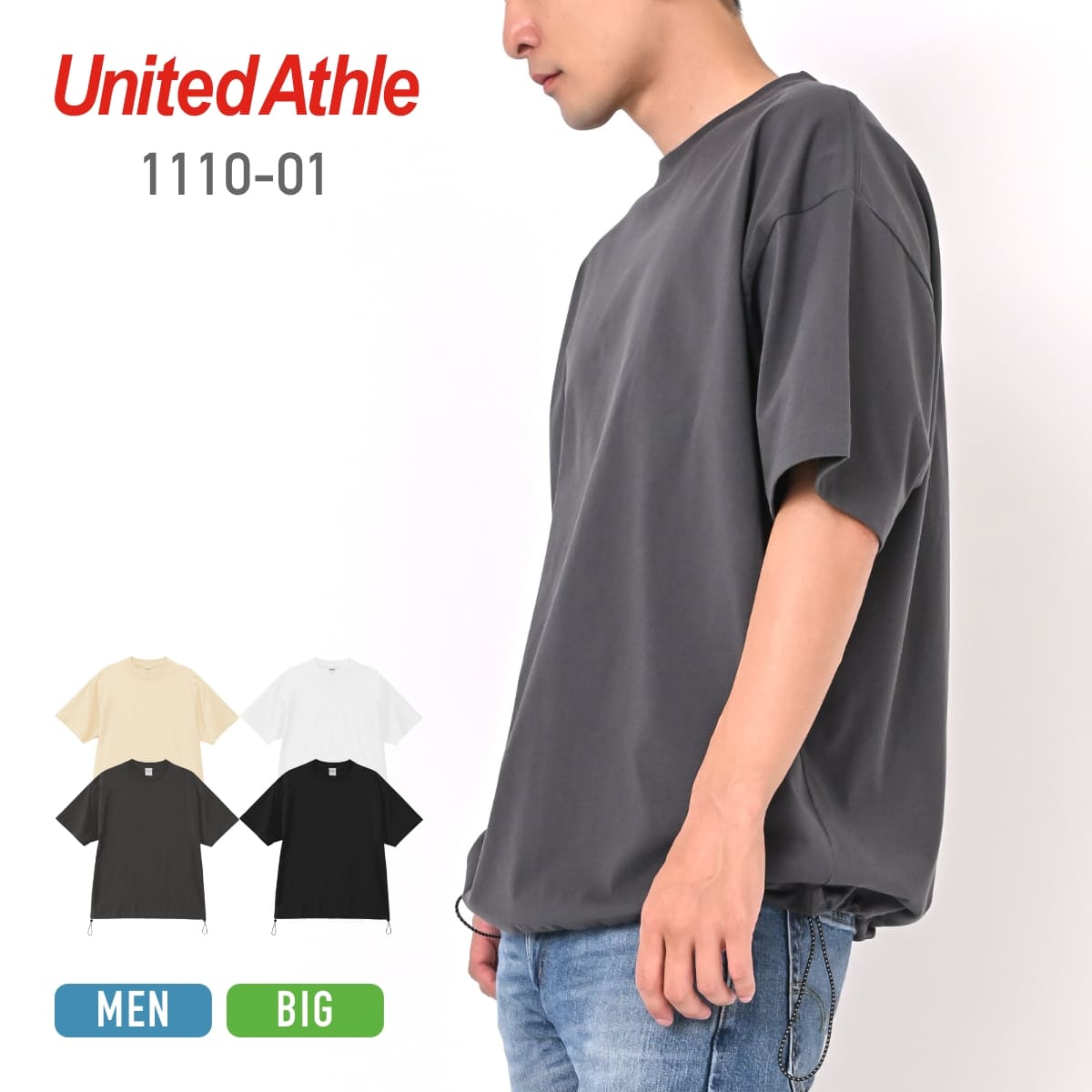 【LINE追加で500円オフ】United Athle 6.5オンス ファインジャージー リラックスフィット Tシャツ(裾ドローコード) 1110-01 メンズ 半袖 無地 リラックスフィット ドロップショルダー 綿100% 裾調整 裾コード ゆったり 大人 カジュアル