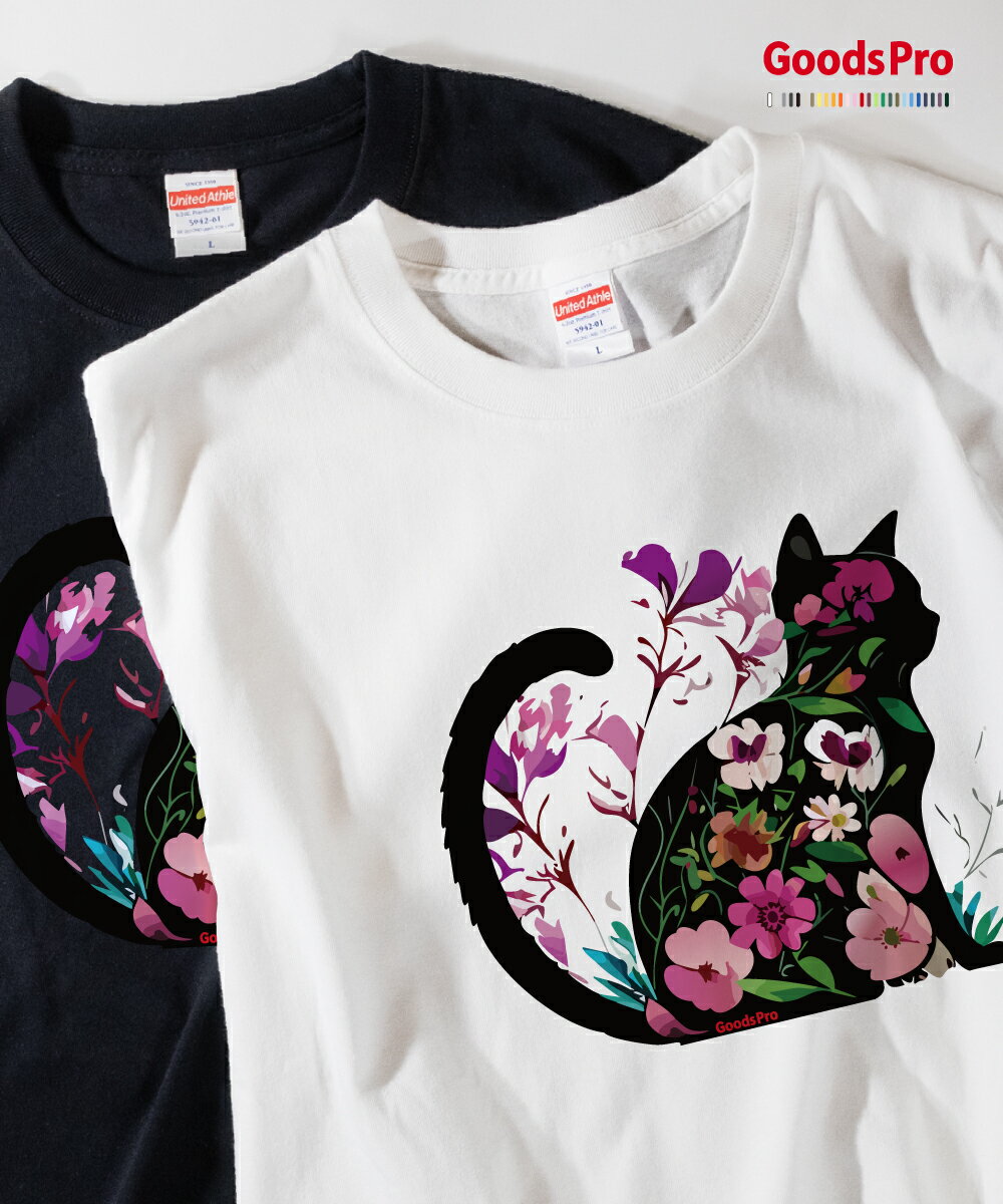 受注生産 フラワーキャット 出会いのテキちゃん Tシャツ ピンク ユニセックス メール便送料無料 花 猫 メンズ レディース テキスタイル デザイン 綿 100% よれない 透けない 長持ち 白Tシャツ ホワイト 5.6オンス