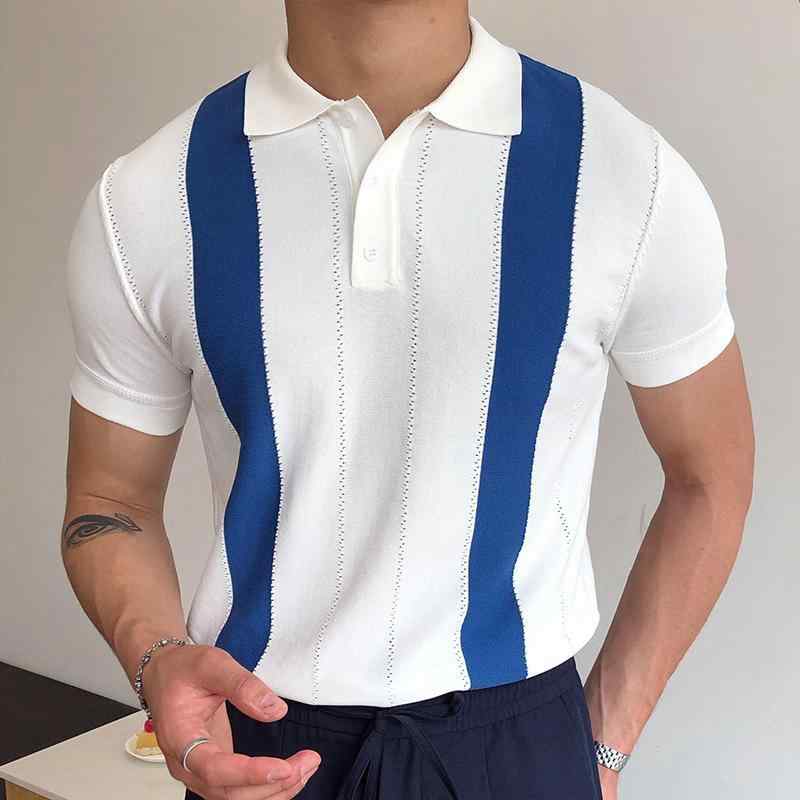 シャツ トップス メンズ 夏 半袖 ホワイト ストライプ スリム ポロシャツ ホワイトストライプ おしゃれ レジャー 休日 スタイリッシュ カジュアル