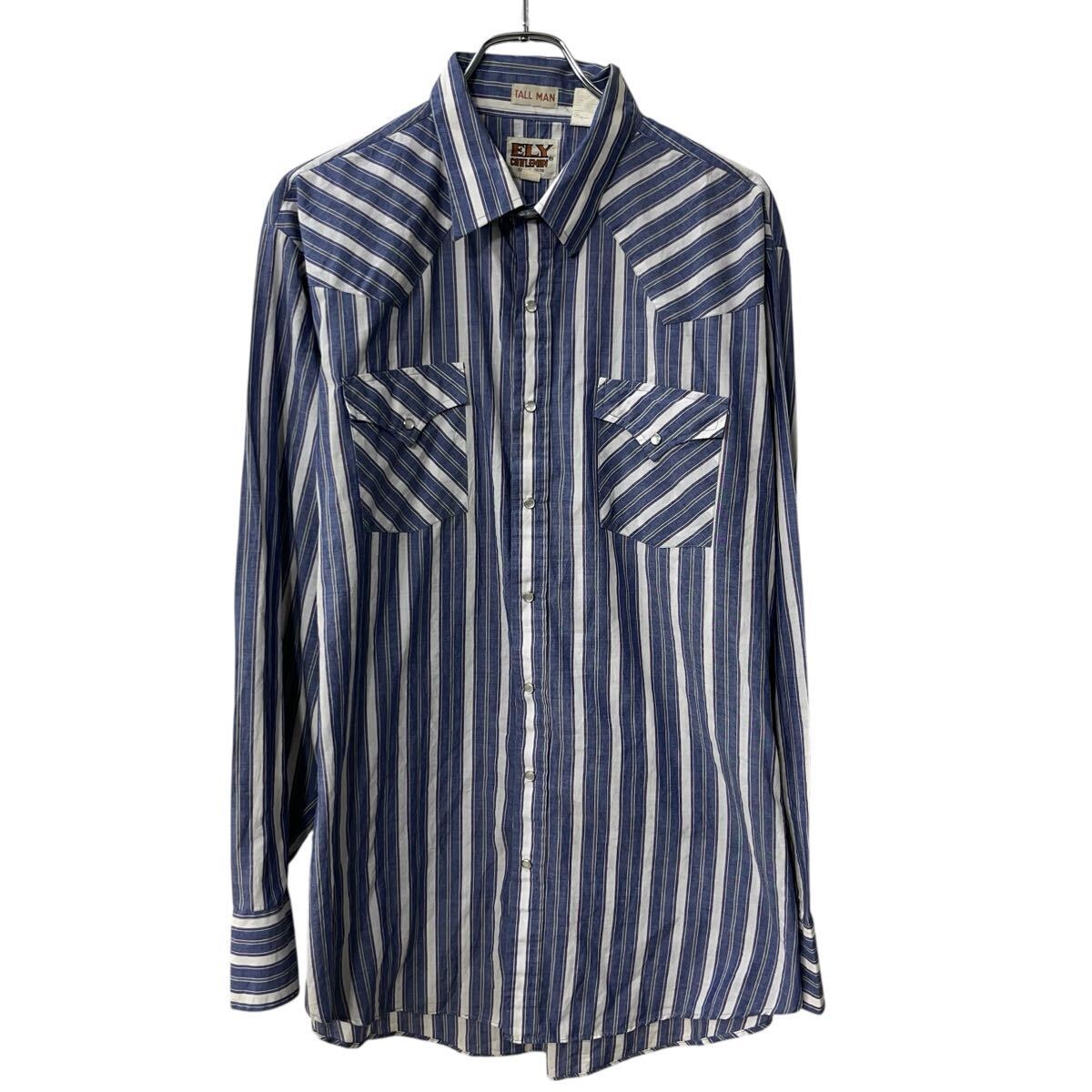 【中古】【古着】 ELY CATTLEMAN 長袖 ウエスタンシャツ XL ネイビー ホワイト ストライプ スナップボダン 胸ポケット トップス 春物 a710-6674