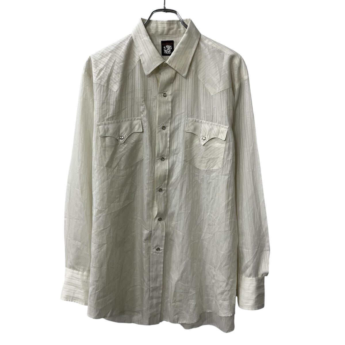 【中古】【古着】 KARMAN 長袖 ウエスタンシャツ L〜 ホワイト ストライプ スナップボダン 胸ポケット トップス 春物 a710-7063
