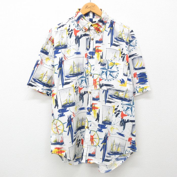 【中古】古着 半袖シャツ メンズ 00年代 00s 船 方位磁石 コットン ボタンダウン 白 ホワイト XLサイズ 中古 トップス | 春夏 春物 春服 夏物 夏服 カジュアルシャツ メンズファッション 半袖シャツ おしゃれ カジュアル