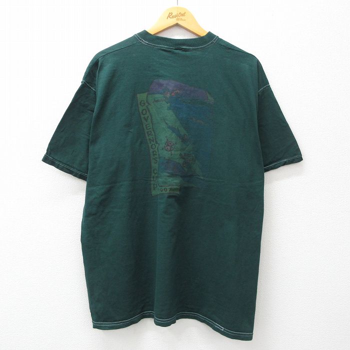 【中古】古着 フルーツオブザルーム 半袖 ビンテージ ヴィンテージTシャツ メンズ 90年代 90s 地図 方位磁石 大きいサイズ 2L LL ビッグシルエット ゆったり ビッグサイズ オーバーサイズ コットン クルーネック 丸首 USA製 アメリカ製 緑 グリーン 【spe】 X