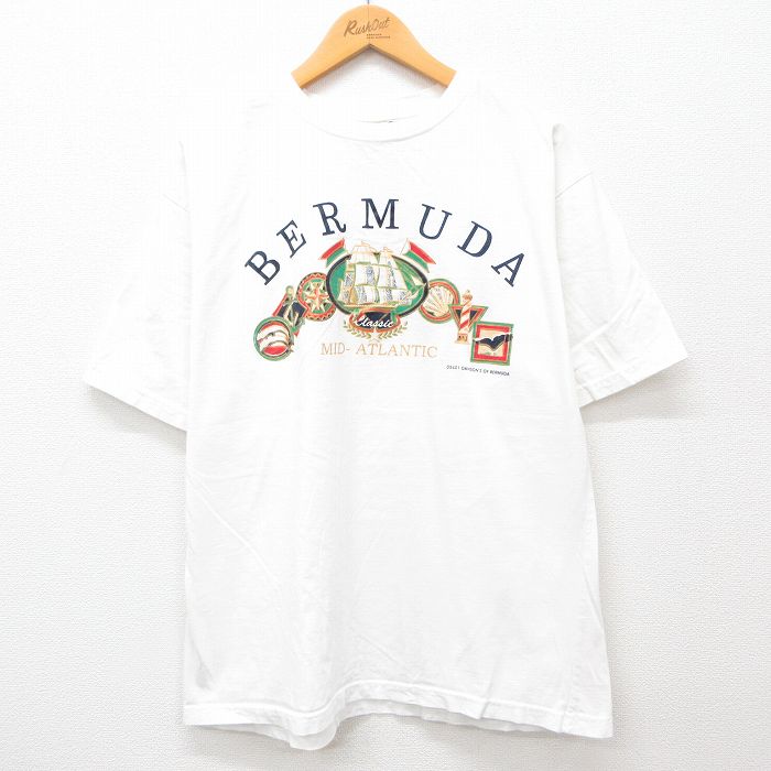 【中古】古着 半袖 ビンテージ ヴィンテージTシャツ メンズ 00年代 00s バミューダ 船 方位磁石 コットン クルーネック 丸首 白 ホワイト XLサイズ 中古 | 春夏 夏物 夏服 ヴィンテージTシャツ メンズファッション カットソー ティーシャツ ティシャツ メンズ