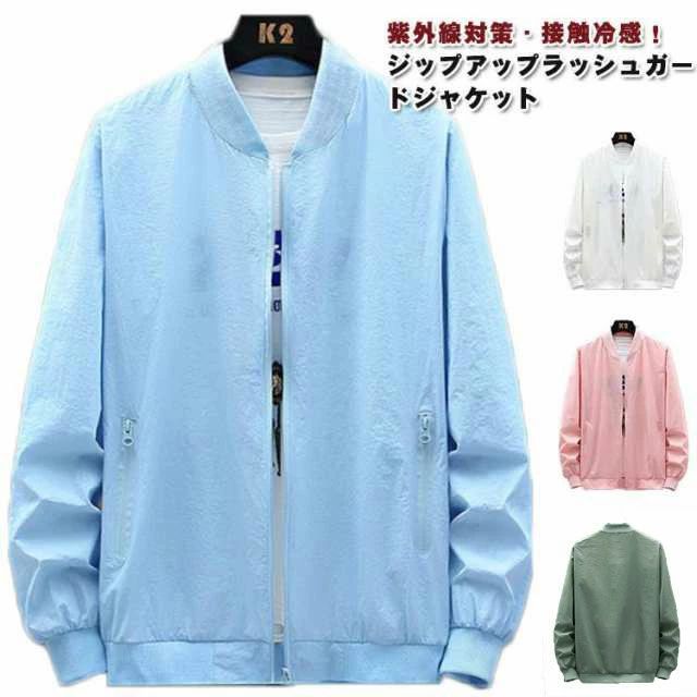 メンズ フードなし ひんやり ブルゾン アウトドア スタンド衿 夏用 ジャケット 日焼け防止 UVカット 紫外線対策 ジャケット 吸汗速乾 接触冷感 スタジャン ラッシュガード 薄手 軽量 ジャンパー 冷房対策 無地 ジップアップ