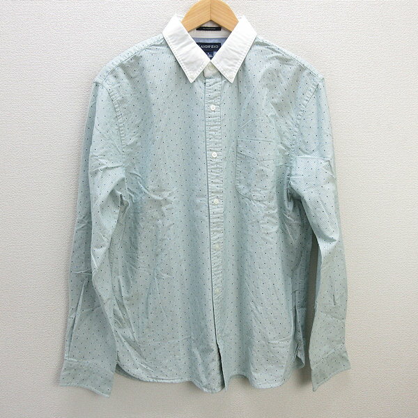 z■ランズエンド/LANDS'END 長袖BDシャツ ドット柄【L】緑青系/men's/105【中古】■