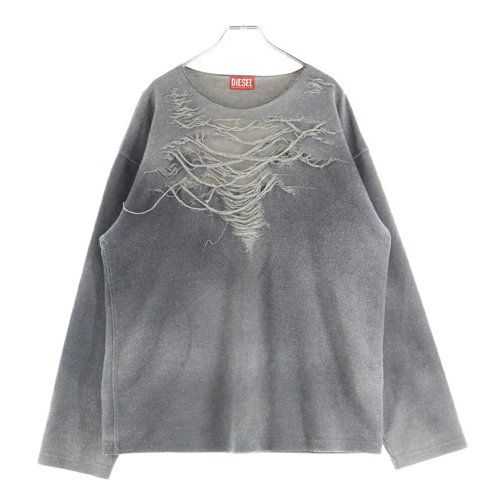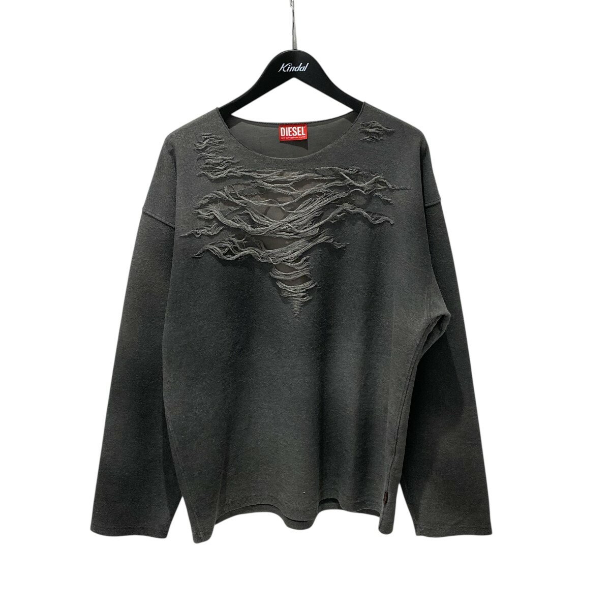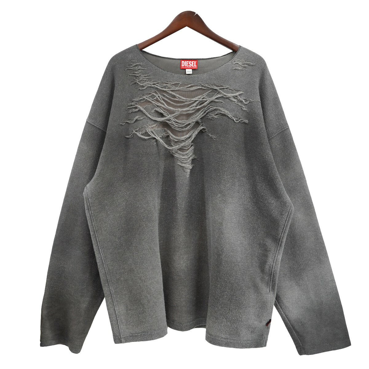 【中古】DIESEL by Glenn Martens 25SS s-ruben Sweatshirt with distressed front ディストレスト 加工 プルオーバー シースルー スウェットシャツ グレー サイズ:XXL 【101125】(ディーゼルバイグレンマーティンス)