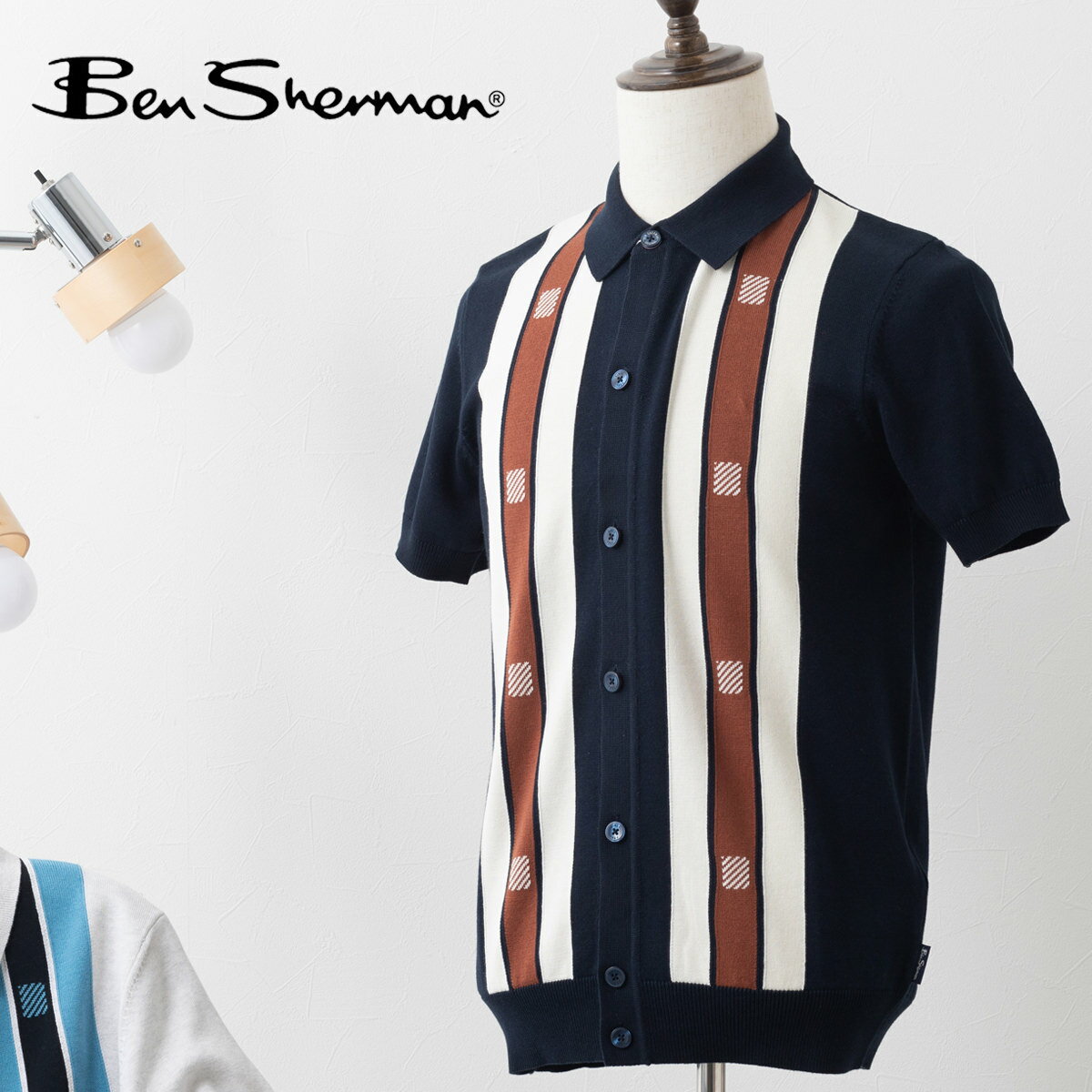 Ben Sherman メンズ ボタンスルー半袖ポロシャツ ストライプ ベンシャーマン ダークネイビー アイボリー レギュラーフィット プレゼント ギフト 商品詳細 【商品名】ben0066867 【カラー】 DARK NAVY / ダークネイビー IVORY / アイボリー 【素材】コットン 100% モッズブランドの代名詞 Ben Shermanベンシャーマンの ボタンスルーニットポロシャツです。 カラーは落ち着いたダークネイビーとアイボリーの2色。 フロントのヴァーティカルストライプがレトロ感を感じるデザイン。 ストライプには立体的なテクスチャーを使用し、遊び心のある一着に仕上げました。 袖やボタンにはさりげなくブランドロゴが施されているオリジナルアイテム。 さりげない部分にもこだわりが感じられる愛着の湧く一品です。 ' 50's rock and screen icons ' サイズ詳細 サイズ着丈身幅肩幅袖丈 S67.0cm49.0cm40.0cm22.5cm M69.0cm51.0cm41.0cm23.0cm L71.0cm53.0cm42.0cm23.5cm ※素材の特性上採寸は目安となっており、同サイズでも若干の個体差がございます事をご了承お願いします。 【BEN SHERMAN / ベンシャーマン】 国内最大級 ここでしか手に入らないスタイル。 Ben Sherman ベンシャーマンは1963年イギリスのブライトンで モッズテイストを大胆に取り入れたデザインシャツメーカーとしてスタート。 Ben Sherman ベンシャーマン オリジナルのボタンダウンシャツが ビートルズ、ローリングストーンズ・オアシスをはじめ 数々のUKロックミュージシャンに愛用されてきました。 現在もブライトン-ロンドンを拠点に、モッズの中心としてスタイルを発信中。