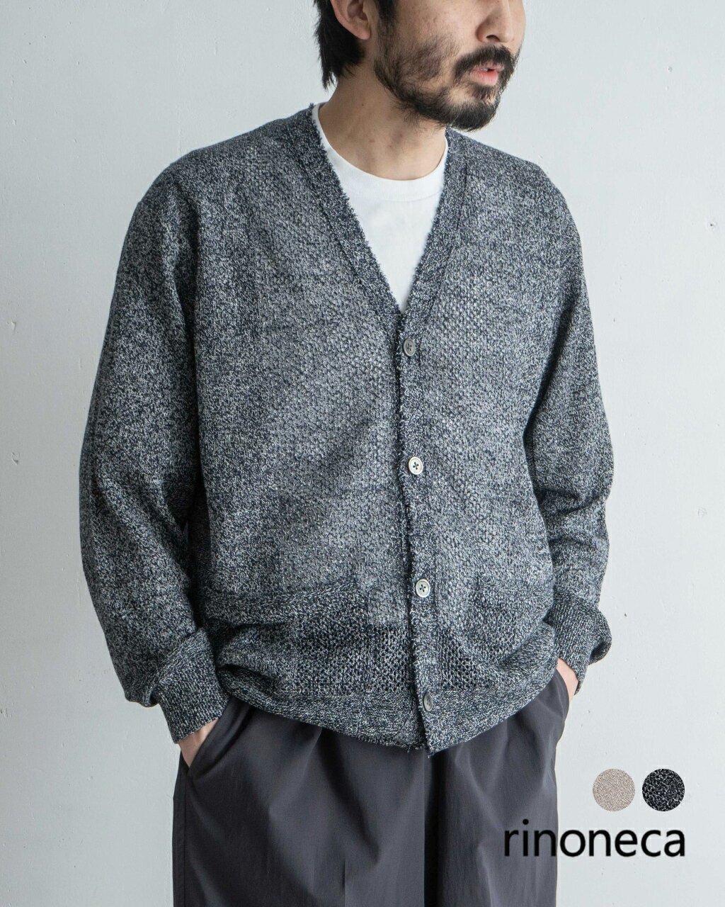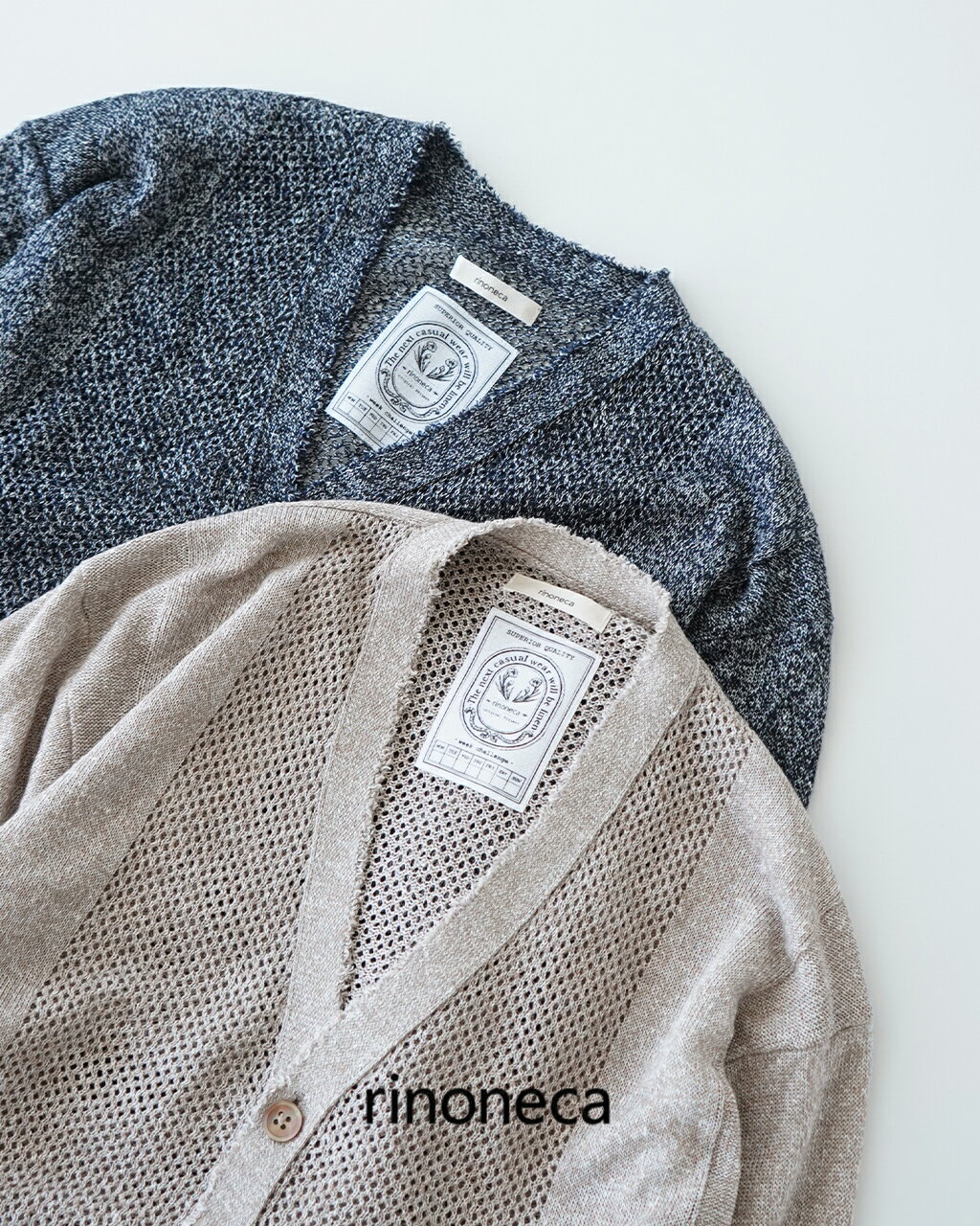 【最大20%OFFクーポン対象】リノネカ rinoneca 3/24 LEUVEN 3色杢 リネン メッシュ柄 カーディガン メンズ ルーヴェン 羽織り RNC007 0510 xp10 cpn10