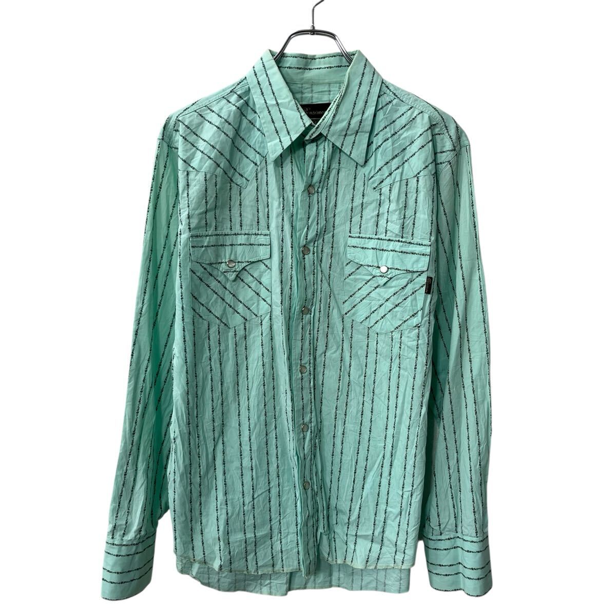【中古】【古着】 Bensimon 長袖 ストライプシャツ M ライトブルー ベンシモン スナップボダン 胸ポケット 花柄 長袖シャツ トップス 春物 a710-5989