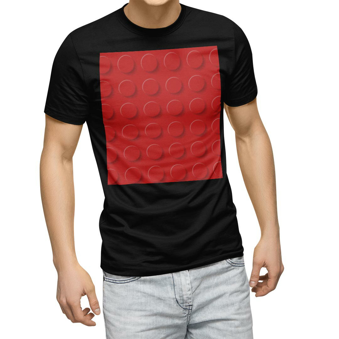 tシャツ メンズ 半袖 ブラック デザイン XS S M L XL 2XL Tシャツ ティーシャツ T shirt 黒 007348 チェック・ボーダー レゴ ブロック 赤 レッド