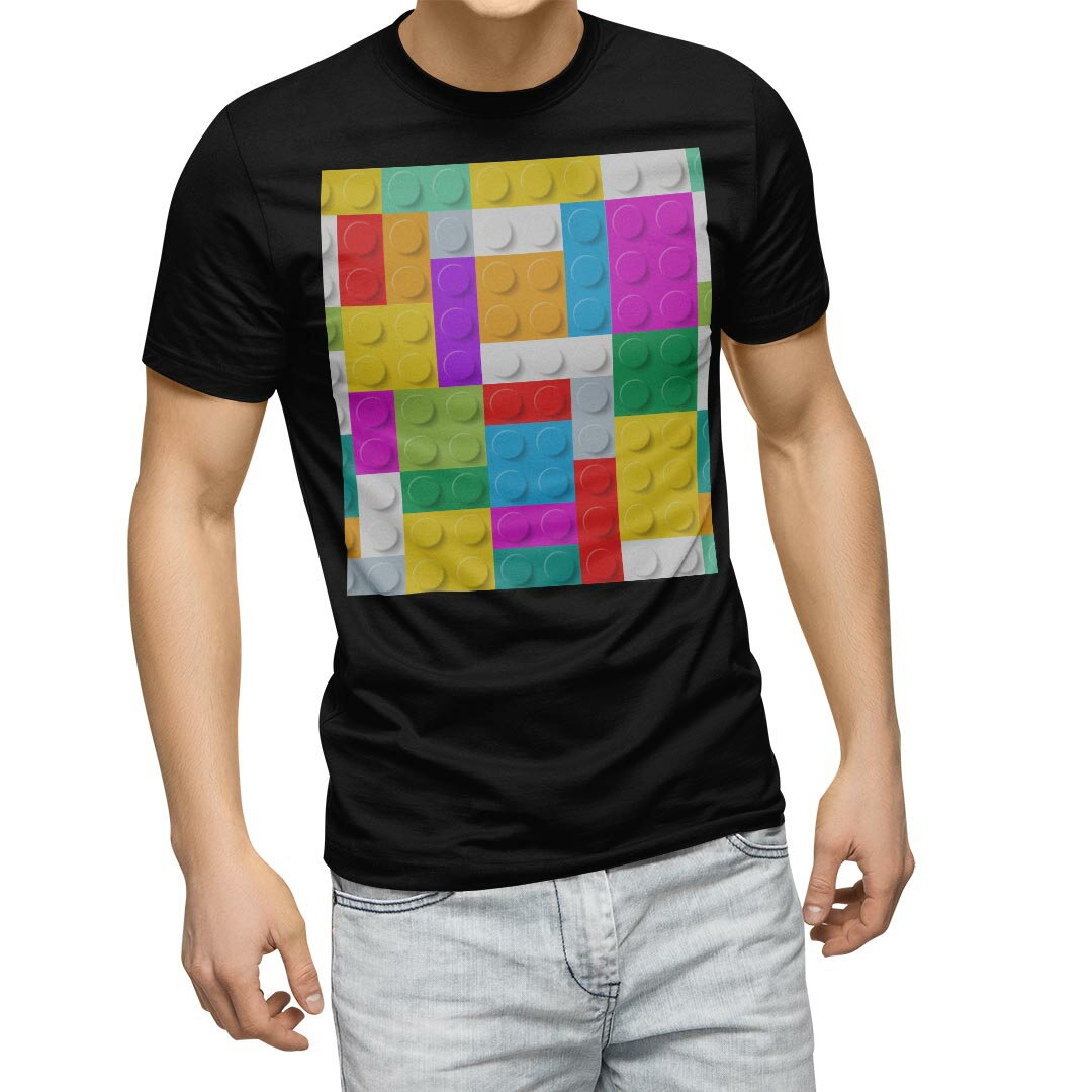 tシャツ メンズ 半袖 ブラック デザイン XS S M L XL 2XL Tシャツ ティーシャツ T shirt 黒 005799 レゴ ブロック カラフル