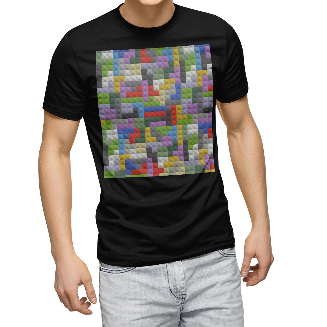 tシャツ メンズ 半袖 ブラック デザイン XS S M L XL 2XL Tシャツ ティーシャツ T shirt 黒 007349 レゴ ブロック カラフル 模様
