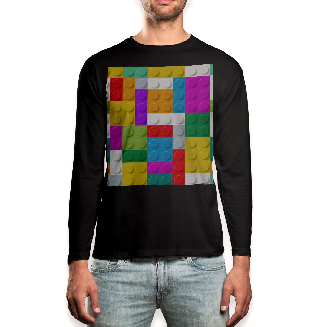 ロング tシャツ メンズ 長袖 ブラック デザイン XS S M L XL 2XL ロンT ティーシャツ 黒 black T shirt long sleeve 005799 レゴ ブロック カラフル