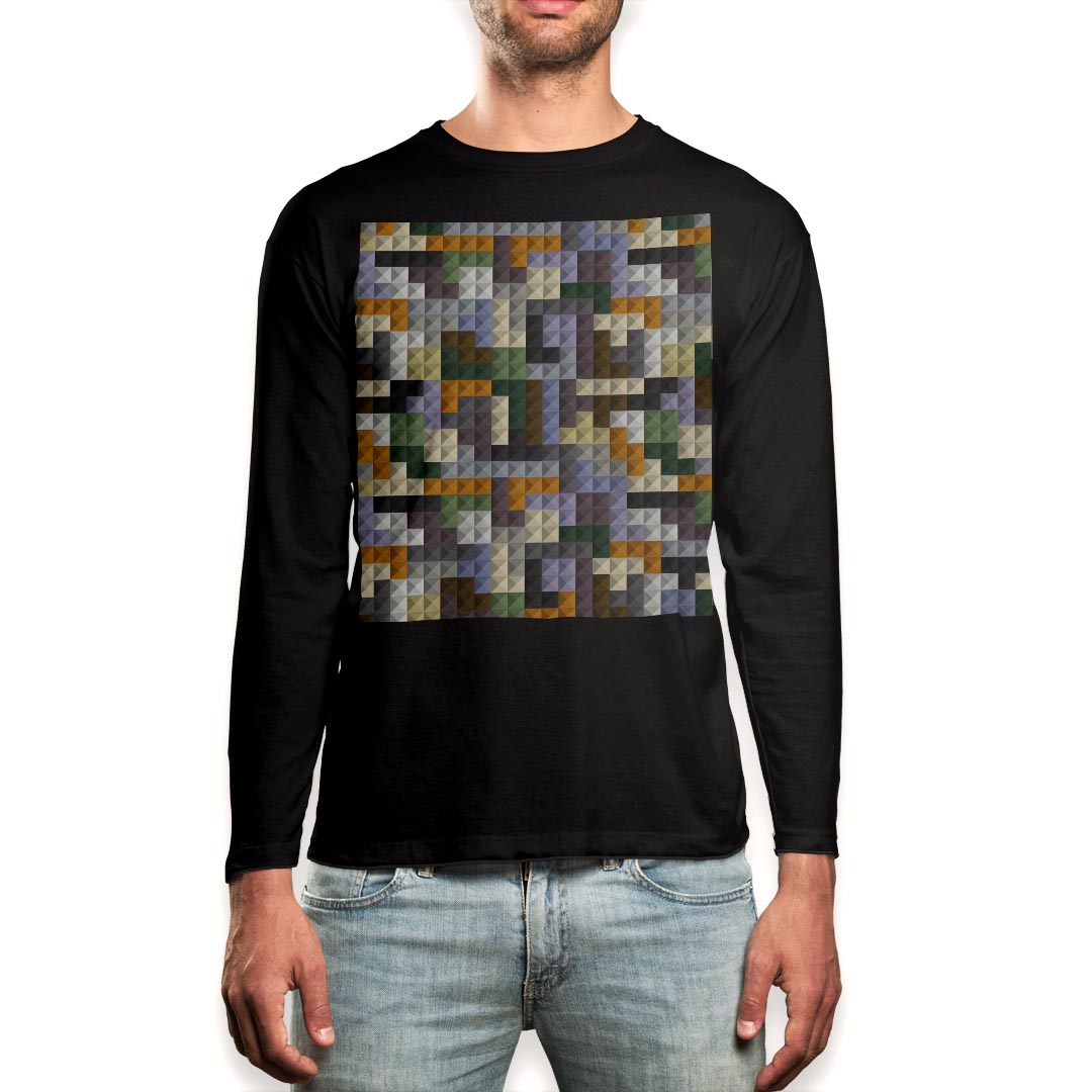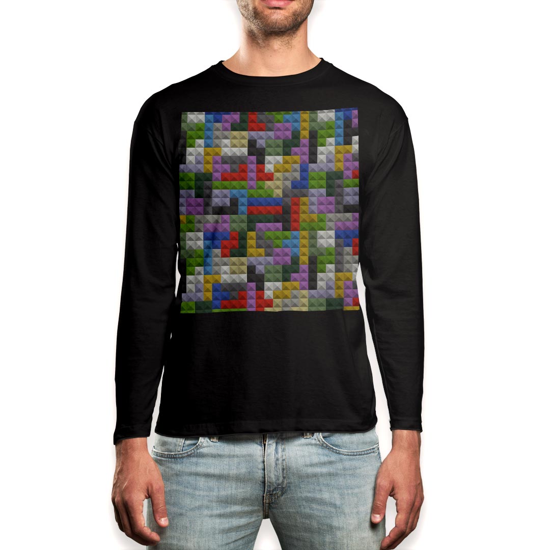 ロング tシャツ メンズ 長袖 ブラック デザイン XS S M L XL 2XL ロンT ティーシャツ 黒 black T shirt long sleeve 007349 レゴ ブロック カラフル 模様