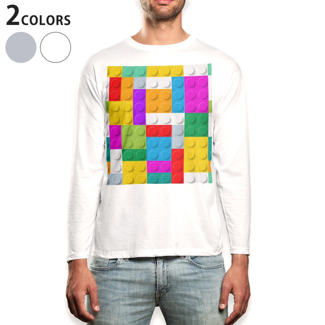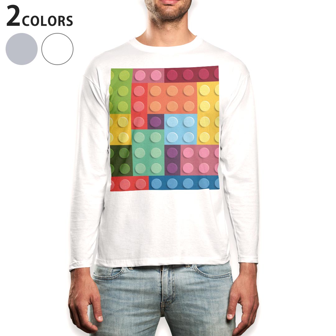 ロング tシャツ メンズ 長袖 ホワイト グレー デザイン XS S M L XL 2XL Tシャツ ティーシャツ T shirt long sleeve 005799 レゴ ブロック カラフル