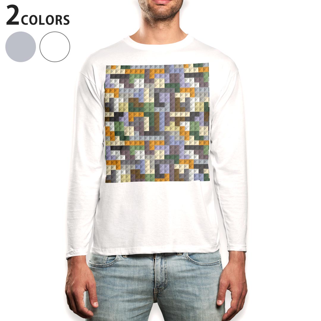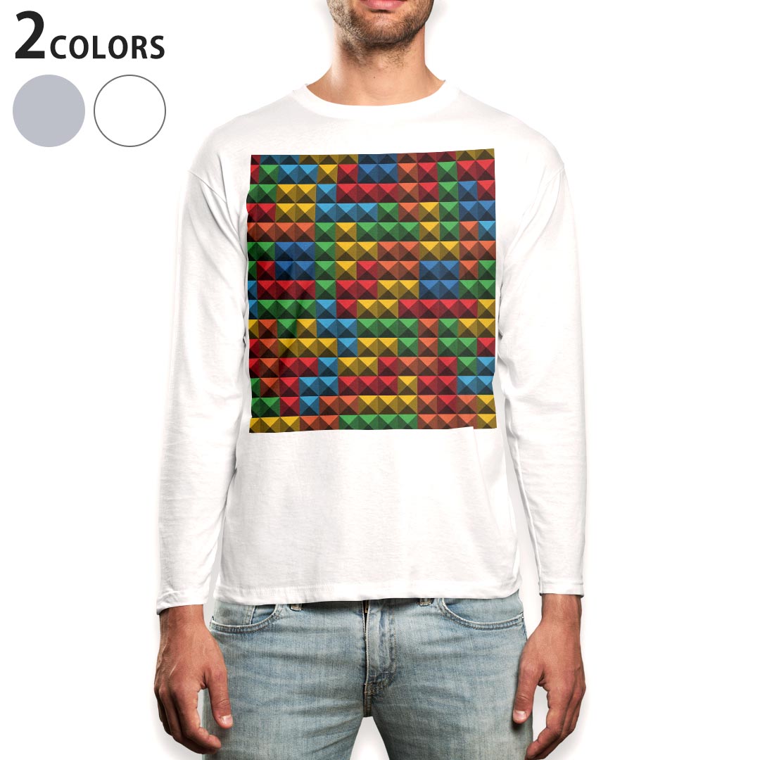 ロング tシャツ メンズ 長袖 ホワイト グレー デザイン XS S M L XL 2XL Tシャツ ティーシャツ T shirt long sleeve 007349 レゴ ブロック カラフル 模様