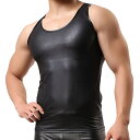 レザー風タンクトップ 男性用 合皮メンズタンクトップ フェチ フェティッシュ 彼氏プレゼント 旦那プレゼント(whc45)[M便 1/2]
