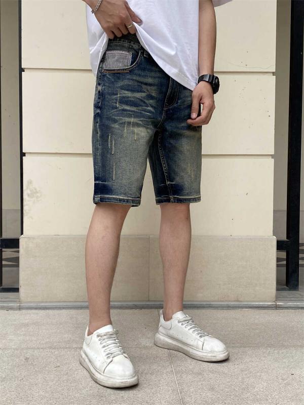 メンズ ファッション 服 男性用 オシャレ シンプル 大人 かっこいい 大きいサイズ ストリート 紳士服 ハイエー 黄色 レトロ ブルー 韓国スタイル ストレッチ スリムフィット 五分丈 デニム パンツ